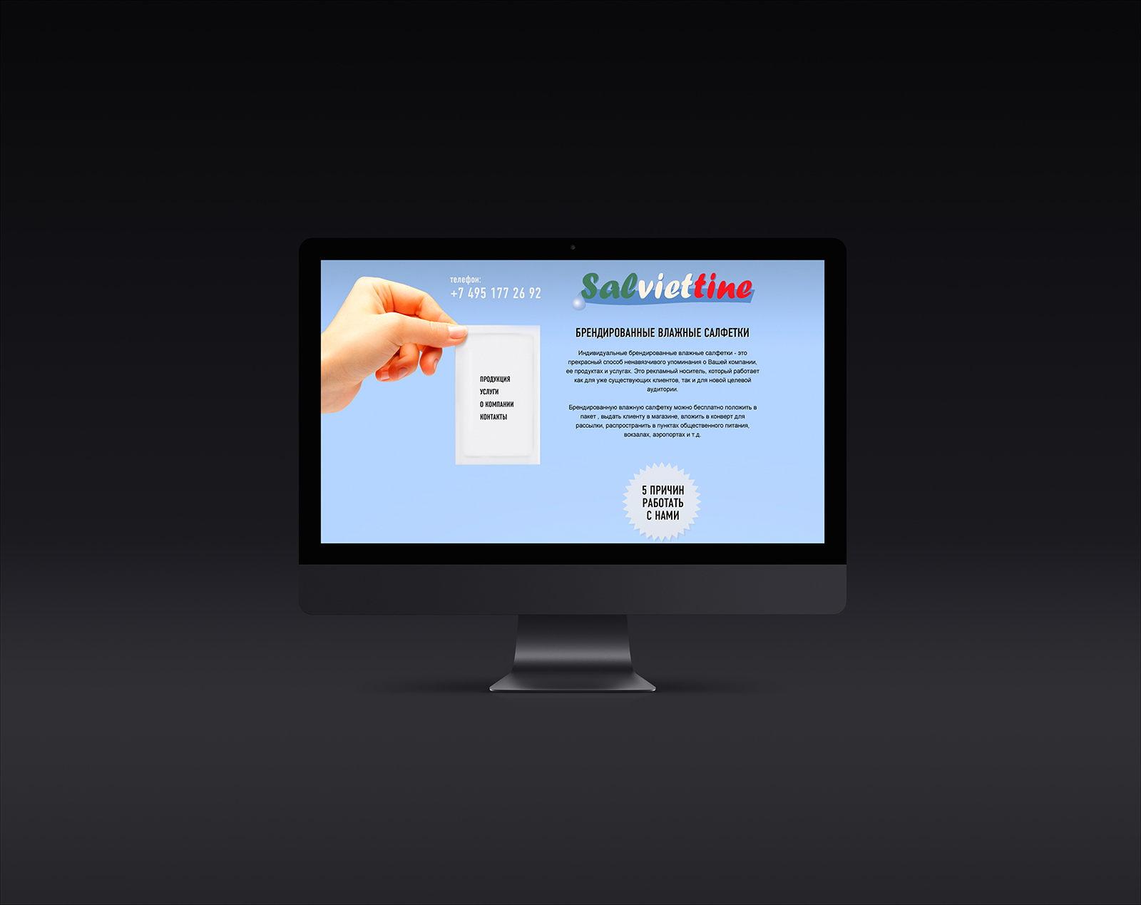 Разработали дизайн-концепцию сайта-визитки на основании представленной продукции компании.